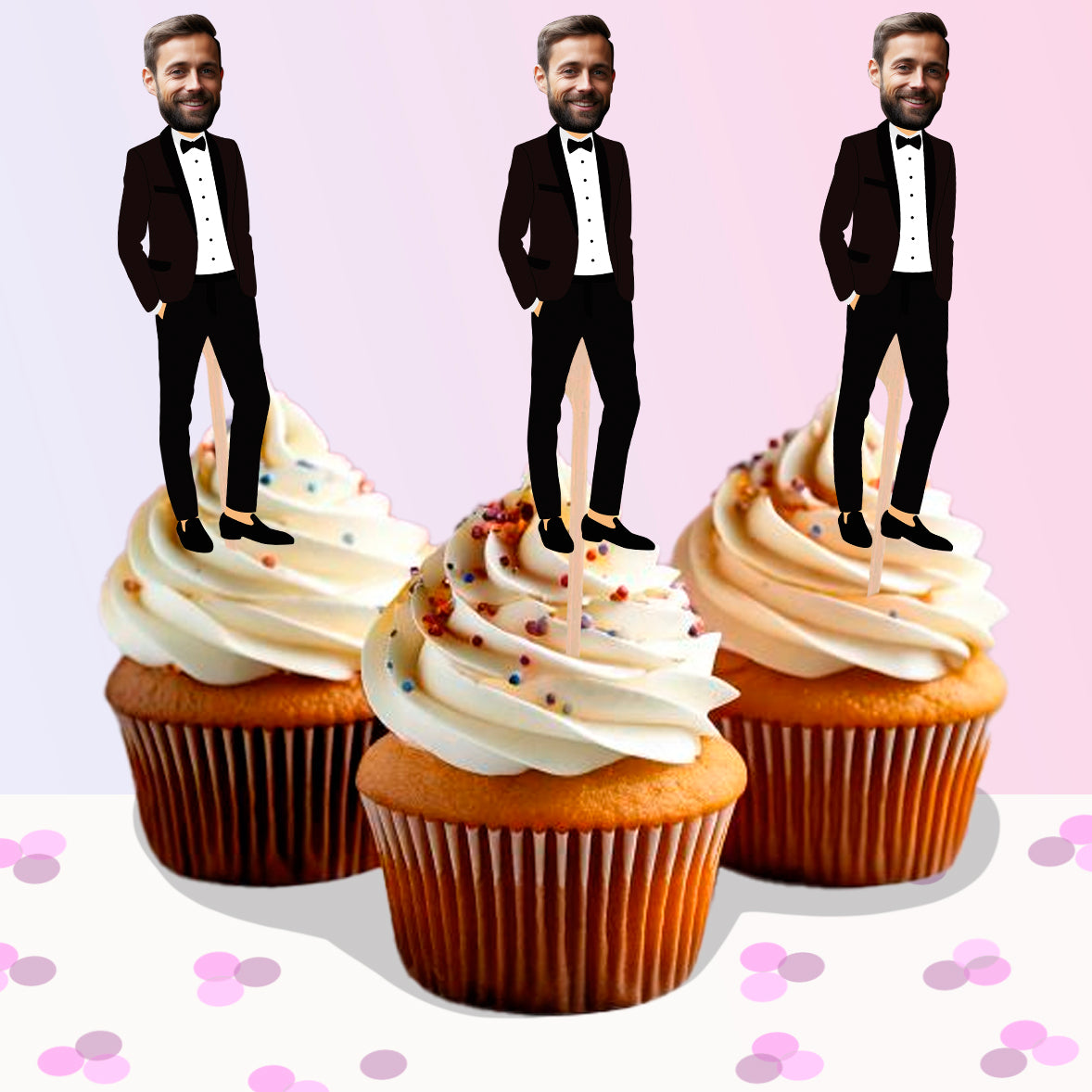 Imagine the laughter and smiles as guests see the adorable couple's faces adorning our custom toppers!