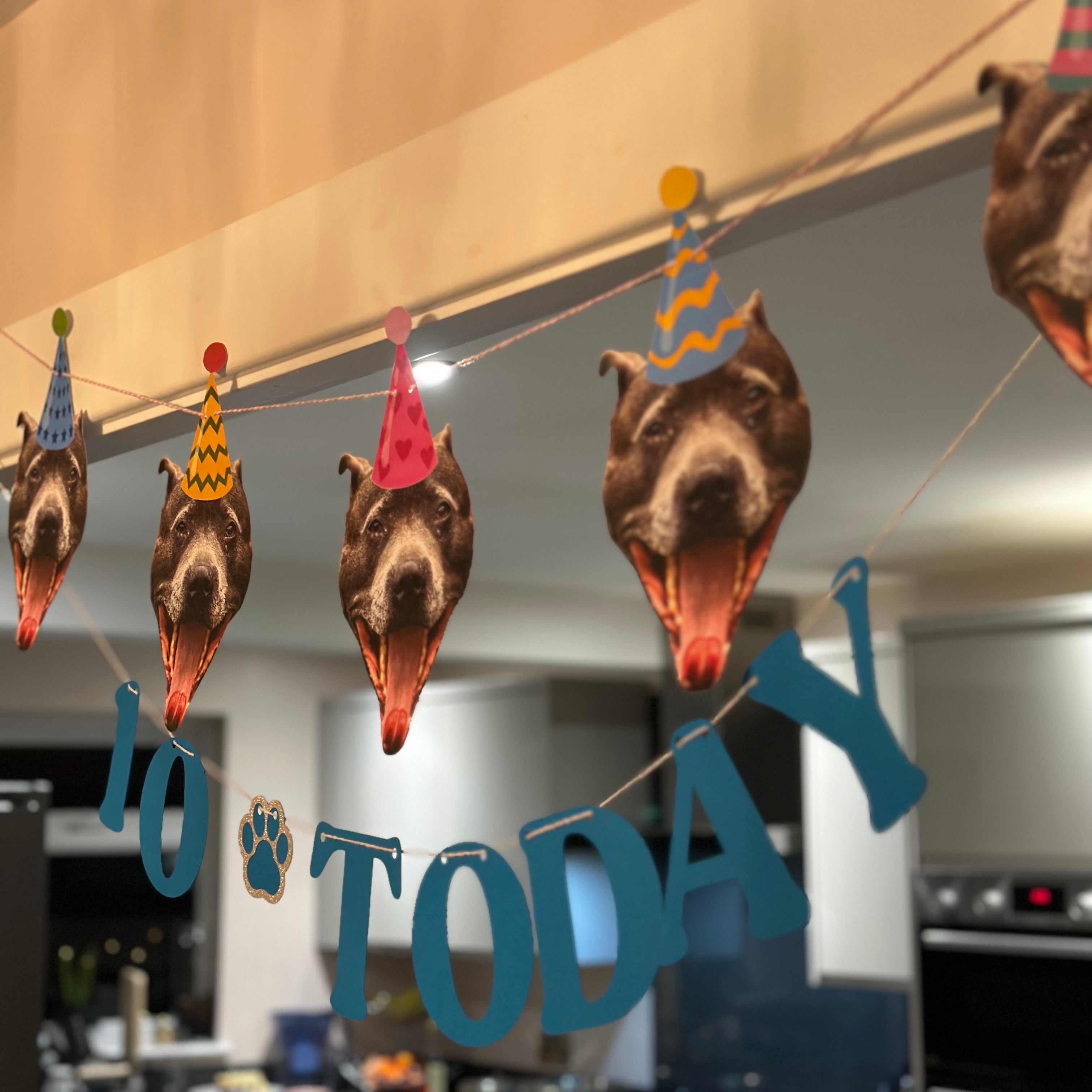 Make your pets birthday party extra special with our custom Birthday Pawty bunting!
